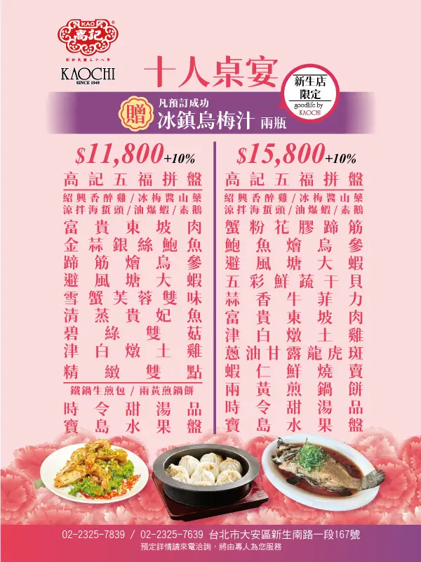 預訂任十人桌菜($11,800 / $15,800 任一),送冰鎮烏梅汁兩瓶
