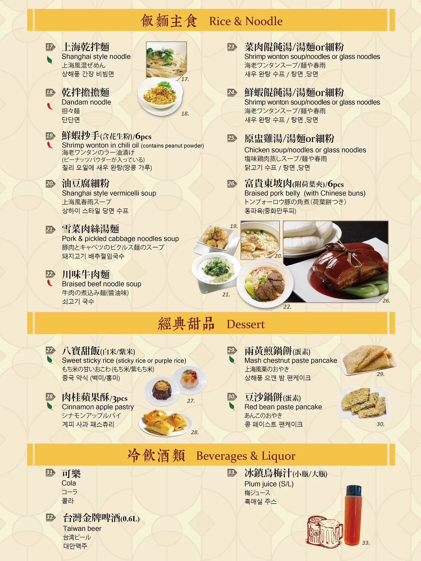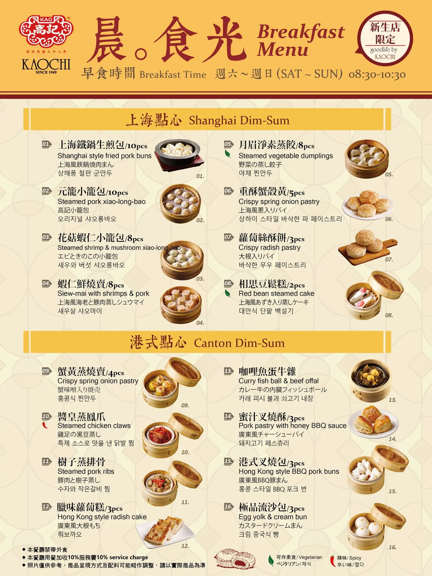 平日假日早上皆有,上海點心、飯麵主食、港式點心、甜品飲品