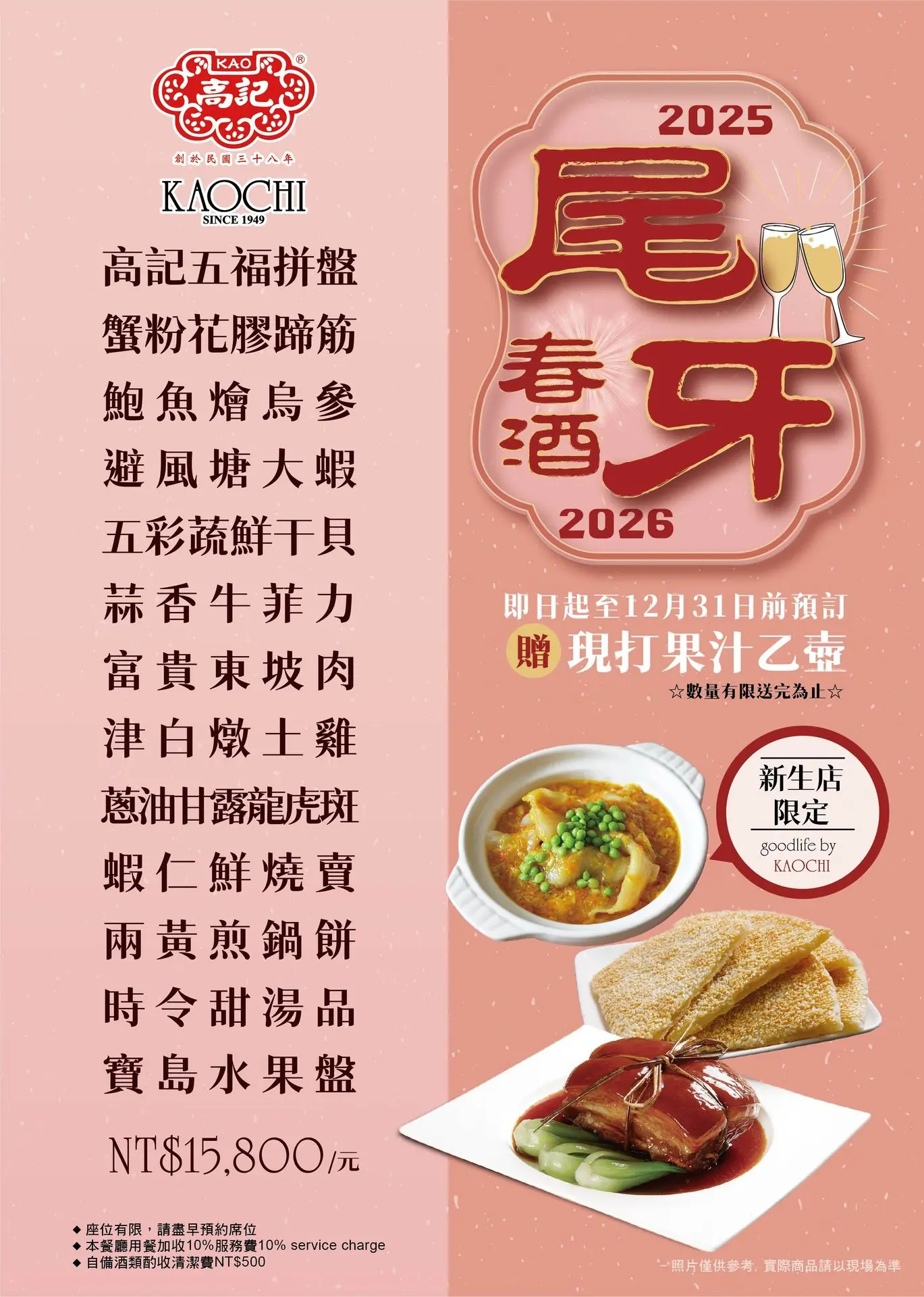 即日起至12/31前預訂,贈現打果汁乙壺